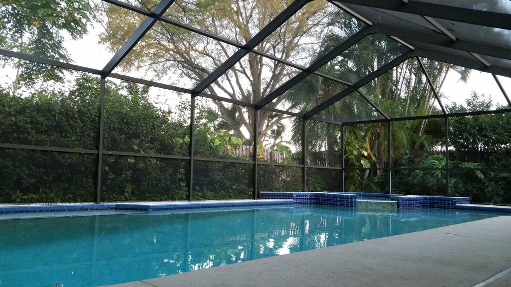 Pool enclosures are the most effective solution, as they block wind from ever touching your water. But they’re also the most expensive. Alternatively, a screen enclosure, solid fencing, or even bushes/trees can serve as great windbreaks.